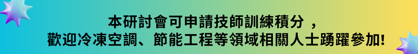 | 11:30~11:55 | 建築能效評估系統與空調改善案例分享 | 中華民國冷凍空調技師公會全國聯合會 技師 吳彥輝 |